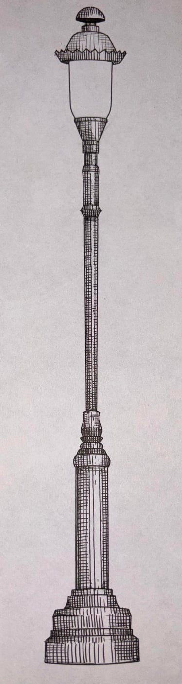 Lamp process - Since the lamps were a mid-nineteenth-century addition to the city I wanted to emulate a cross hatching etching to give it a dated look
